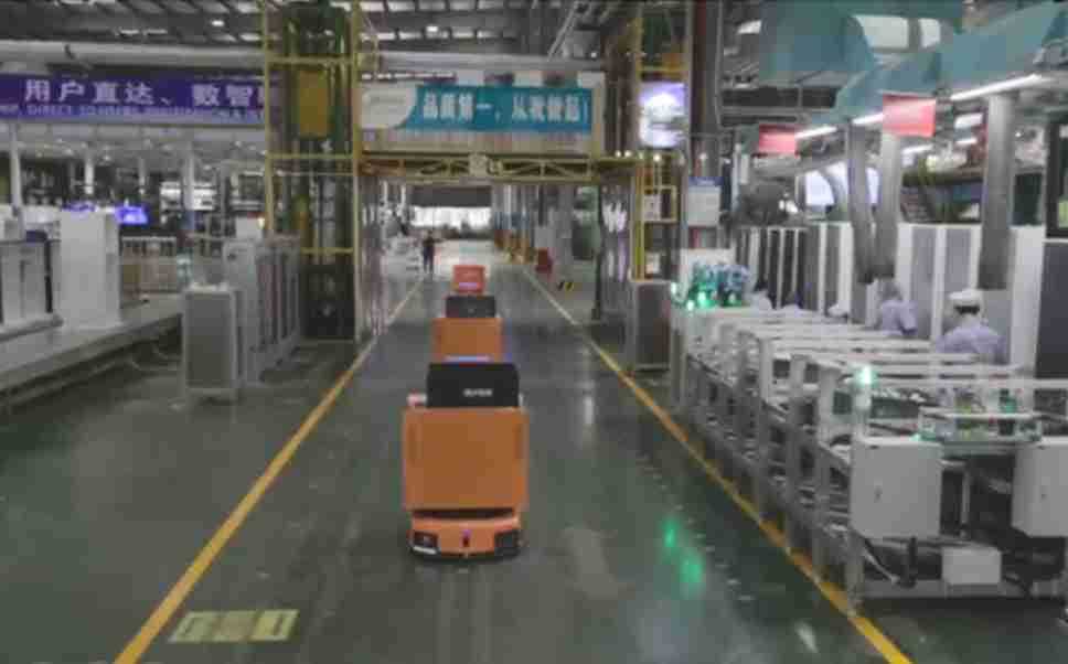 为车载冰箱物流配送打造的智能解决方案,,,包含产中物流通过潜伏举升AMR搬运至线边,,,产后成品物流智能仓储,,流程包含产中物流智能齐套入库,,,线边安灯叫料AMR智能配送至线边,,,成品入库、、、出库,,,通过无人堆高车机器人,,,智能仓储管理替代人工作业管理,,,,实现更高存储、、、更高效率、、、、更具柔性化的解决方案。。。